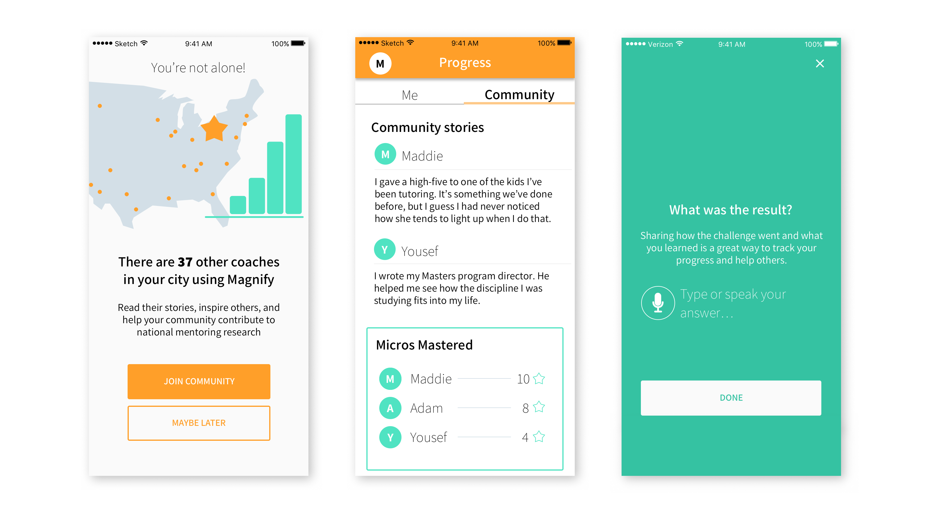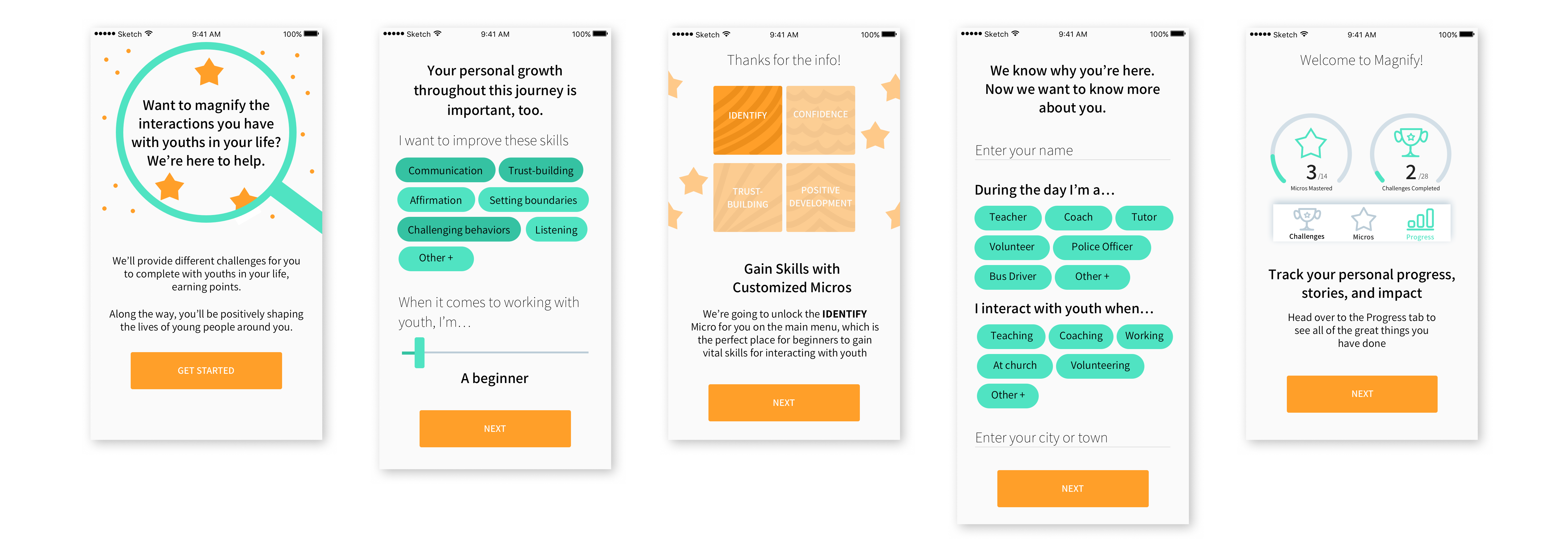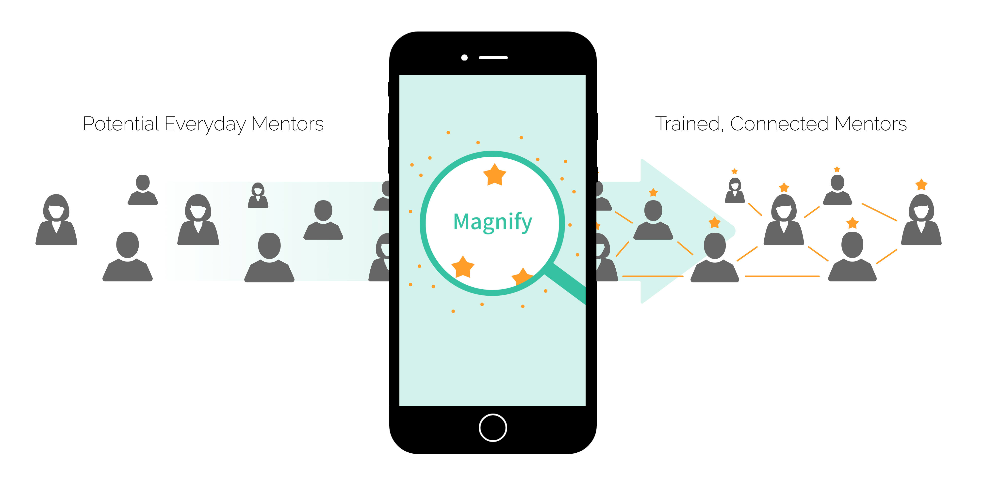 Magnify is a mobile application focused on encouraging adults to form a habit of mentoring in simple, everyday actions. We see adults that interact regularly with youth - such as coaches, teachers, and tutors - as potential Everyday Mentors. By equipping these potential Everyday Mentors with the knowledge and confidence to positively impact the youth around them, Magnify aims to create a seamless support structure of caring adults for all youth in a community.